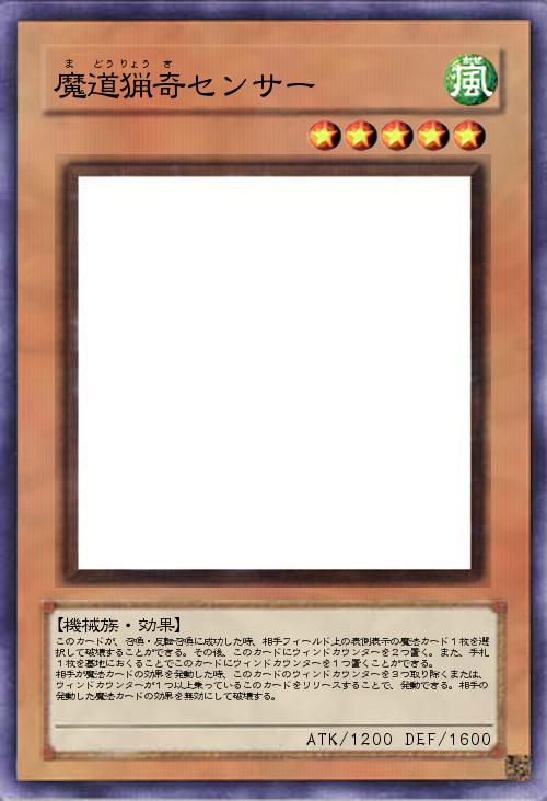 このカードが、召喚・反転召喚に成功した時、相手フィールド上の表側表示の魔法カード1枚を選択して破壊することができる。その後、このカードにウィンドカウンターを2つ置く。また、手札1枚を墓地におくることでこのカードにウィンドカウンターを1つ置くことができる。 相手が魔法カードの効果を発動した時、このカードのウィンドカウンターを3つ取り除くまたは、ウィンドカウンターが1つ以上乗っているこのカードをリリースすることで、発動できる。相手の発動した魔法カードの効果を無効にして破壊する。 |