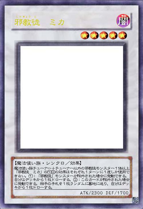 闇の誘惑で邪教徒を除外すれば、ミカの効果も合わさって3枚ドローと、中々美味しい効果になりますね。」(2015-01-29 23:28)