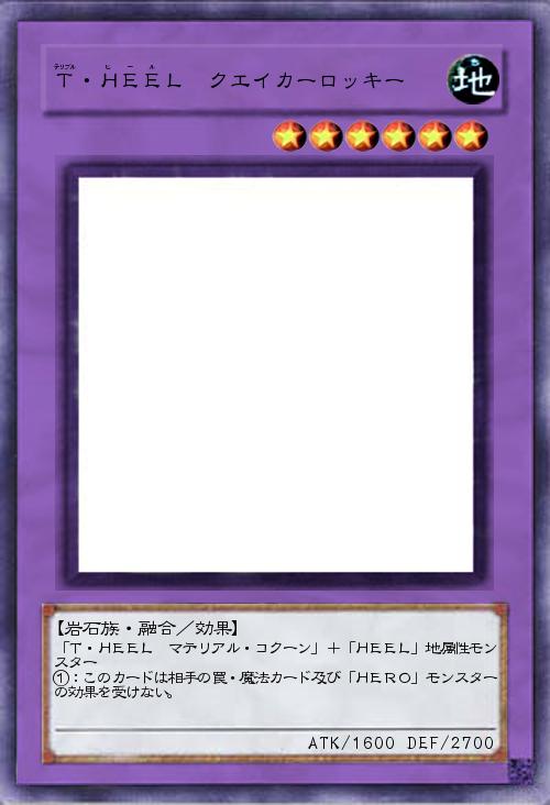 「T・HEEL マテリアル・コクーン」+「HEEL」地属性モンスター ①:このカードは相手の罠・魔法カード及び「HERO」モンスターの効果を受けない。 |