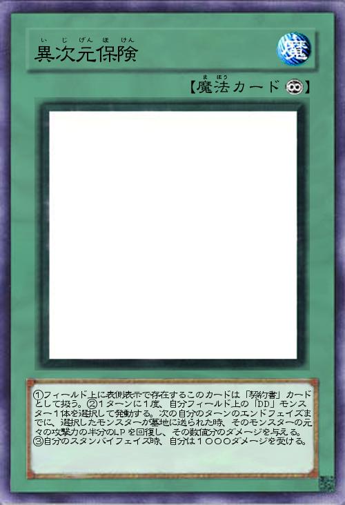 | ①フィールド上に表側表示で存在するこのカードは「契約書」カードとして扱う。②1ターンに1度、自分フィールド上の「DD」モンスター1体を選択して発動する。次の自分のターンのエンドフェイズまでに、選択したモンスターが墓地に送られた時、そのモンスターの元々の攻撃力の半分のLPを回復し、その数値分のダメージを与える。③自分のスタンバイフェイズ時、自分は1000ダメージを受ける。 | |||