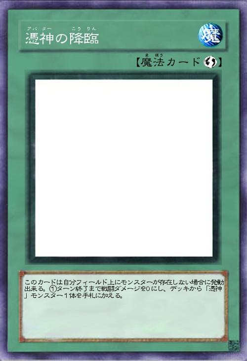 | このカードは自分フィールド上にモンスターが存在しない場合に発動出来る。①ターン終了まで戦闘ダメージを0にし、デッキから「憑神」モンスター1体を手札に加える。 | |||