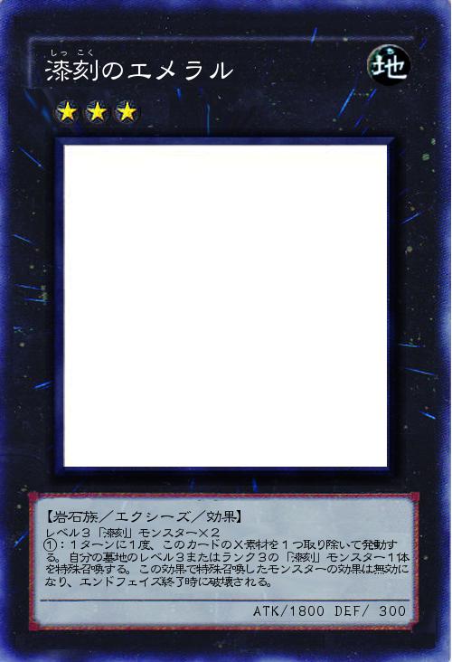 レベル3「漆刻」モンスター×2 ①:1ターンに1度、このカードのX素材を1つ取り除いて発動す る。自分の墓地のレベル3またはランク3の「漆刻」モンスター1体を特殊召喚する。この効果で特殊召喚したモンスターの効果は無効になり、エンドフェイズ終了時に破壊される。 |