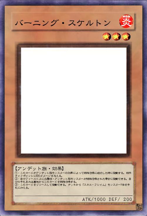 ①:このカードがアンデット族モンスターの効果によって特殊召喚に成功した時に発動する。相手ライフポイントに500ダメージを与える。 ②:自分フィールド上に炎属性・アンデット族モンスターが特殊召喚された場合に発動できる。自分の手札または墓地からこのカードを特殊召喚する。 ③:このカードをリリースして発動できる。デッキから「スカル・フレイム」モンスター1体を手札に加える。 |