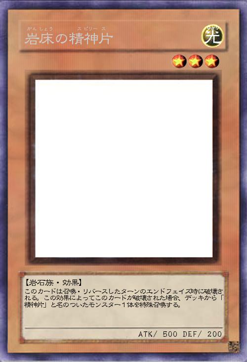 | このカードは召喚・リバースしたターンのエンドフェイズ時に破壊される。この効果によってこのカードが破壊された場合、デッキから「精神片」と名のついたモンスター1体を特殊召喚する。 | |||