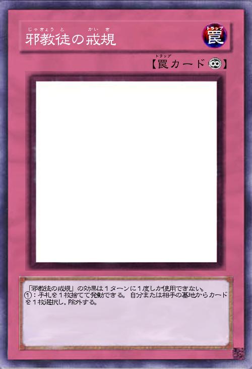 「邪教徒の戒規」の効果は1ターンに1度しか使用できない。 ①:手札を1枚捨てて発動できる。自分または相手の墓地からカードを1枚選択し,除外する。 |