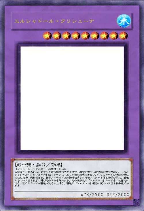 「シャドール」モンスター+水属性モンスター このカードをエクストラデッキから特殊召喚する場合、融合召喚でしか特殊召喚できない。「エルシャドール・クリシューナ」は1ターンに1度しか特殊召喚できない。①このカードの特殊召喚に成功した時、発動できる。相手フィールド上の特殊召喚されたモンスター1体と相手の手札、墓地からカードを1枚ずつ選びその3枚を除外する。その後手札の「シャドール」カードを1枚墓地へ送る。②このカードが墓地へ送られた場合、墓地の「シャドール」魔法・罠カードを1枚手札に加える。 |