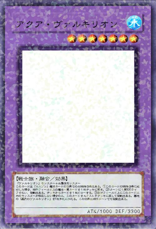 水のヴァルキリオン。非常に高い守備力と特殊召喚時に魔法・罠をデッキにバウンス、更にドロー加速を備える。再利用しづらいデッキへのバウンスとドロー効果から、コントロール向けのカードと言える。」(2015-02-14 01:27)