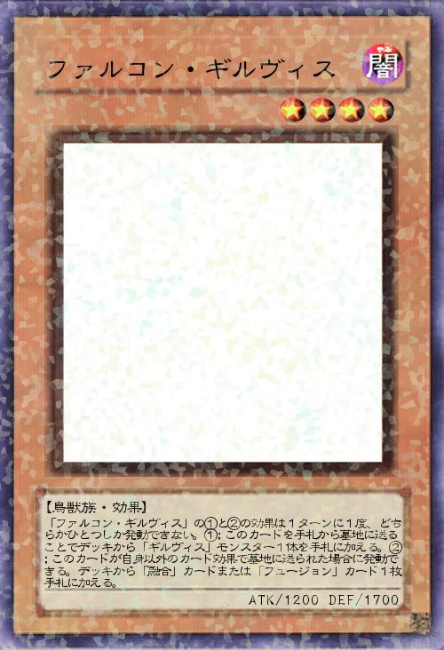 | 「ファルコン・ギルヴィス」の①と②の効果は1ターンに1度、どちらかひとつしか発動できない。①;このカードを手札から墓地に送ることでデッキから「ギルヴィス」モンスター1体を手札に加える。②;このカードが自身以外のカード効果で墓地に送られた場合に発動できる。デッキから「融合」カードまたは「フュージョン」カード1枚手札に加える。 | |||