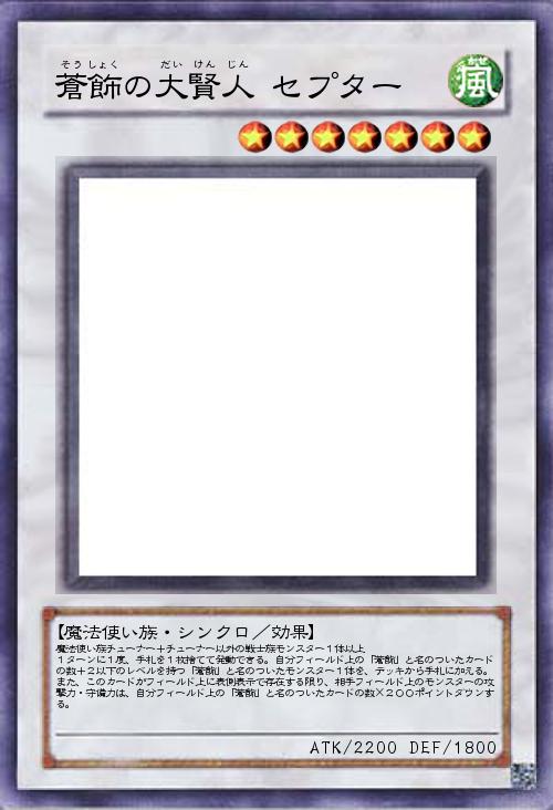 魔法使い族チューナー+チューナー以外の戦士族モンスター1体以上 1ターンに1度、手札を1枚捨てて発動できる。自分フィールド上の「蒼飾」と名のついたカードの数+2以下のレベルを持つ「蒼飾」と名のついたモンスター1体を、デッキから手札に加える。また、このカードがフィールド上に表側表示で存在する限り、相手フィールド上のモンスターの攻撃力・守備力は、自分フィールド上の「蒼飾」と名のついたカードの数×200ポイントダウンする。 |