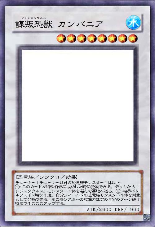 チューナー+チューナー以外の恐竜族モンスター1体以上 ①:このカードが特殊召喚に成功した時に発動できる。デッキから「レジスタウルス」モンスター1体を選んで墓地へ送る。②:相手バトルフェイズ時に1度、自分フィールドの恐竜族モンスター1体を対象として発動できる。そのモンスターの攻撃力は次の自分のターン終了時まで1000アップする。 |