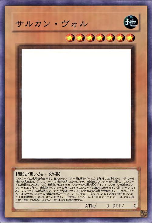 | このカードは通常召喚出来ず、墓地のモンスター3種類をゲームから除外した場合のみ、手札から特殊召喚出来る。①このカードの特殊召喚に成功した時、忠誠値カウンターを4つ置く。このカードは戦闘では破壊されず、戦闘を行なったモンスターの攻撃力800ポイントにつき1つ忠誠値カウンターを取り除く。忠誠値カウンターの無くなったこのカードは墓地に送られる。②1ターンに1度、このカードの忠誠値カウンターを増減させて以下の何れかの効果を発動する。+1自分フィールド上の全モンスターの攻撃力を600ポイントアップする。-2エンドフェイズまで相手モンスター1体を選択してコントロールを得る。-7自分フィールドに「ドラゴントークン」(ドラゴン族・地・星6・攻2600/守2400)を4体まで特殊召喚する。 | |||
