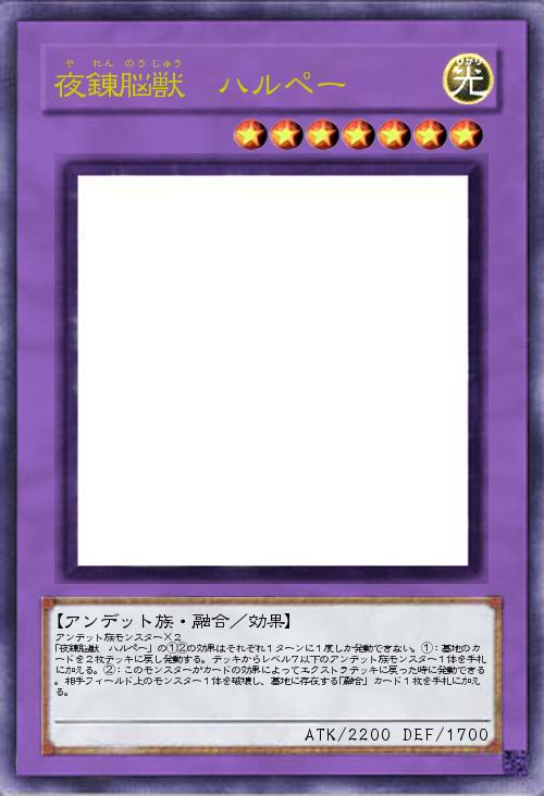 アンデット族モンスター×2 「夜錬脳獣 ハルペー」の①②の効果はそれぞれ1ターンに1度しか発動できない。①:墓地のカードを2枚デッキに戻し発動する。デッキからレベル7以下のアンデット族モンスター1体を手札に加える。②:このモンスターがカードの効果によってエクストラデッキに戻った時に発動できる。相手フィールド上のモンスター1体を破壊し、墓地に存在する「融合」カード1枚を手札に加える。 |