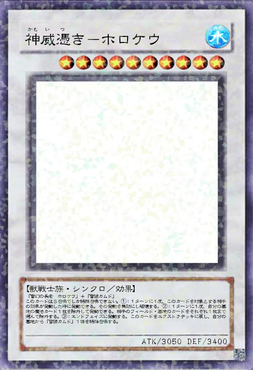 「雪幻の長老 ホロケウ」+「雪狼カムド」 このカードはS召喚でしか特殊召喚できない。①:1ターンに1度、このカードを対象とする相手の効果が発動した時に発動できる。その発動を無効にし破壊する。②:1ターンに1度、自分の墓地の魔法カード1枚を除外して発動できる。相手のフィールド・墓地のカードをそれぞれ1枚まで選んで除外する。③:エンドフェイズに発動する。このカードをエクストラデッキに戻し、自分の墓地から「雪狼カムド」1体を特殊召喚する。 |