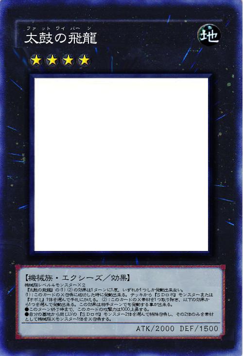 機械族レベル4モンスター×2 『太鼓の飛龍』の(1)(2)の効果は1ターンに1度、いずれか1つしか発動出来ない。 (1):このカードのX召喚に成功した時に発動出来る。デッキから『SDロボ』モンスターまたは『オボミ』1体を選んで手札に加える。(2):このカードのX素材を1つ取り除き、以下の効果から1つを選んで発動出来る。この効果は相手ターンでも発動する事が出来る。 ●このターン終了時まで、このカードの攻撃力は1000上昇する。 ●自分の墓地から同じLVの『SDロボ』モンスター2体を選んで特殊召喚し、その2体のみを素材として機械族Xモンスター1体をX召喚する。 |