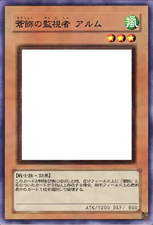 | このカードが特殊召喚に成功した時、自分フィールド上に「蒼飾」と名のついたカードが3枚以上存在する場合、相手フィールド上の表側表示のカード1枚を選択して破壊する。 | |||