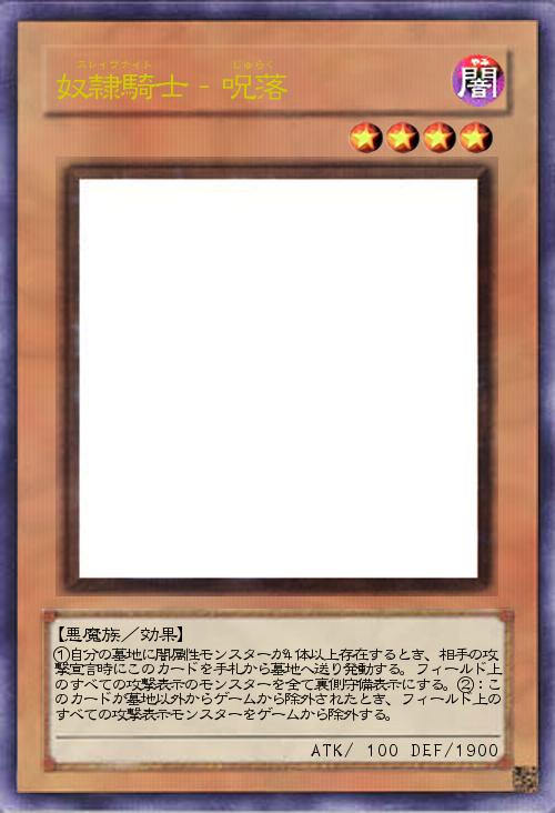 | ①自分の墓地に闇属性モンスターが4体以上存在するとき、相手の攻撃宣言時にこのカードを手札から墓地へ送り発動する。フィールド上のすべての攻撃表示のモンスターを全て裏側守備表示にする。②:このカードが墓地以外からゲームから除外されたとき、フィールド上のすべての攻撃表示モンスターをゲームから除外する。 | |||