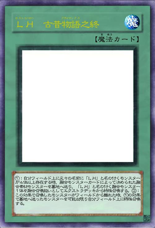 | ①:自分フィールド上に元々の名前に「LH」と名の付くモンスターが4体以上存在する時、融合モンスターカードによって決められた融合素材モンスターを墓地へ送り、「LH」と名の付く融合モンスター1体を融合召喚扱いとしてエクストラデッキから特殊召喚する。②:この効果で召喚したモンスターがフィールドから離れた時、①の効果で墓地へ送ったモンスターを可能な限り自分フィールド上に特殊召喚する。 | |||