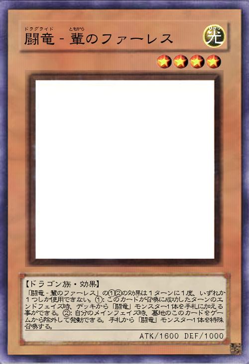 | 「闘竜‐輩のファーレス」の①②の効果は1ターンに1度、いずれか1つしか使用できない。①:このカードが召喚に成功したターンのエンドフェイズ時、デッキから「闘竜」モンスター1体を手札に加える事ができる。②:自分のメインフェイズ時、墓地のこのカードをゲームから除外して発動できる。手札から「闘竜」モンスター1体を特殊召喚する。 | |||