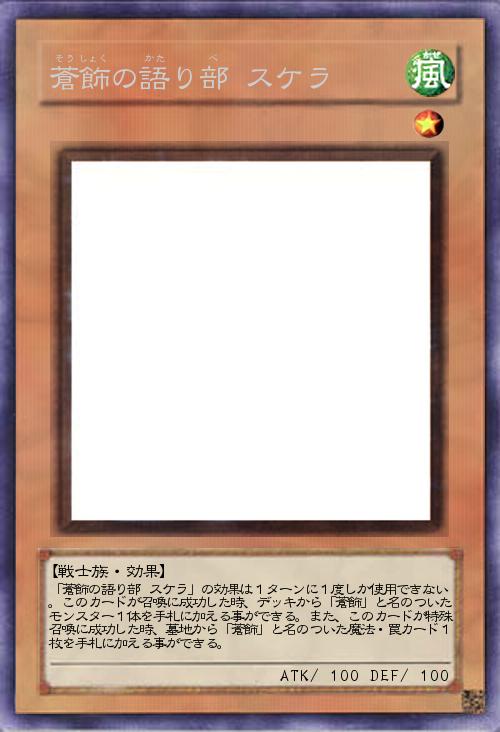 | 「蒼飾の語り部 スケラ」の効果は1ターンに1度しか使用できない。このカードが召喚に成功した時、デッキから「蒼飾」と名のついたモンスター1体を手札に加える事ができる。また、このカードが特殊召喚に成功した時、墓地から「蒼飾」と名のついた魔法・罠カード1枚を手札に加える事ができる。 | |||