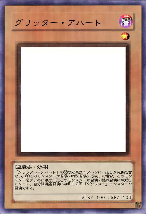 | 「グリッター・アハート」の②の効果は1ターンに一度しか発動できない。①このモンスターが召喚・特殊召喚に成功した場合、このモンスターをデッキに戻す。②このモンスターが召喚・特殊召喚に成功したターン、自分は通常召喚に加えて2回「グリッター」モンスターを召喚できる。 | |||