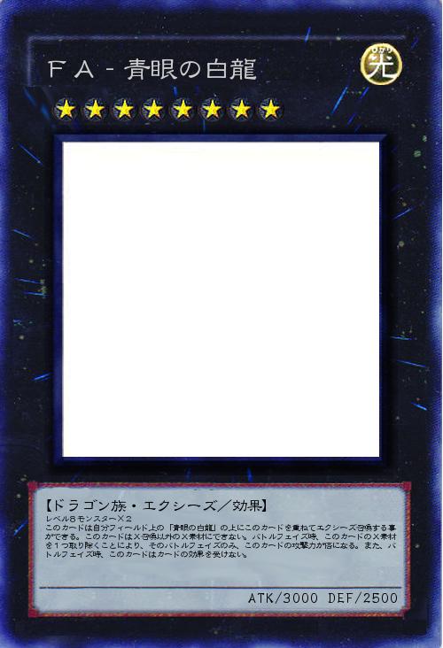 レベル8モンスター×2 このカードは自分フィールド上の「青眼の白龍」の上にこのカードを重ねてエクシーズ召喚する事ができる。このカードはX召喚以外のX素材にできない。バトルフェイズ時、このカードのX素材を1つ取り除くことにより、そのバトルフェイズのみ、このカードの攻撃力が倍になる。また、バトルフェイズ時、このカードはカードの効果を受けない。 |