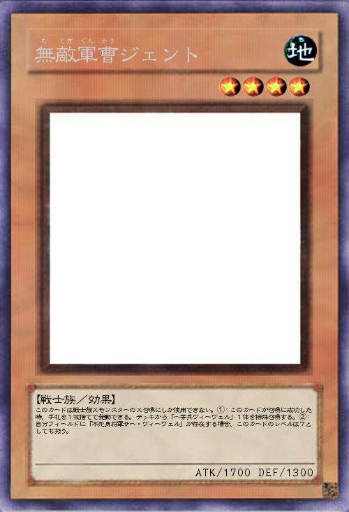 | このカードは戦士族XモンスターのX召喚にしか使用できない。①:このカードが召喚に成功した時、手札を1枚捨てて発動できる。デッキから「一等兵ヴィーヴェル」1体を特殊召喚する。②:自分フィールドに「不死身将軍サー・ヴィーヴェル」が存在する場合、このカードのレベルは7としても扱う。 | |||