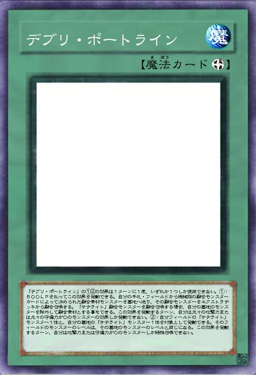 | 「デブリ・ポートライン」の①②の効果は1ターンに1度、いずれか1つしか使用できない。①:500LPを払ってこの効果を発動できる。自分の手札・フィールドから機械族の融合モンスターカードによって決められた融合素材モンスターを墓地へ送り、その融合モンスターをエクストラデッキから融合召喚する。「サテライト」融合モンスターを融合召喚する場合、自分の墓地のモンスターを除外して融合素材とする事もできる。この効果を発動するターン、自分は元々の攻撃力または元々の守備力が0のモンスターの効果しか発動できない。②:自分フィールドの「サテライト」モンスター1体と、自分の墓地の「サテライト」モンスター1体を対象として発動できる。そのフィールドのモンスターのレベルは、その墓地のモンスターのレベルと同じになる。この効果を発動するターン、自分は攻撃力または守備力が0のモンスターしか特殊召喚できない。 | |||
