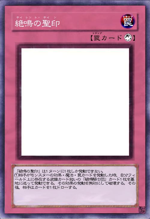 「絶鳴の聖印」は1ターンに1枚しか発動できない。 ①相手がモンスターの効果・魔法・罠カードを発動した時、自分フィールド上に存在する装備カード扱いの「絶鳴騎士団」カード1枚を墓地に送って発動できる。その効果の発動を無効にして破壊する。その後、相手はカードを1枚ドローする。 |