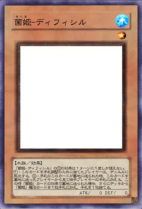 | 「菌姫-ディフィシル」の②の効果は1ターンに1度しか使えない。 ①:このカードを手札調整のために捨てたプレイヤーは、デュエルに敗北する。②:手札のこのカードが墓地に送られた時、このカードを墓地に送ったプレイヤーから見て相手プレイヤーの手札に加える。この時「菌姫」カードの効果で墓地に送られた場合、さらにデッキから「菌姫」魔法カードを1枚手札に加え、手札を1枚捨てる。 | |||