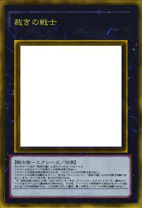 | 元々のカード名が「裁きの龍」と名のついたモンスターx3 このカードはエクシーズ召喚でしか特殊召喚できない。 このカードの特殊召喚は無効化されず、このカード以外の効果を受けない。 このカードの効果を発動するターン、自分は「ライトロード」「裁きの龍」以外の効果を発動できない。また、ターン終了時、自分のLPは0になる。 (1)特殊召喚に成功した時、お互いのデッキ・手札・フィールド・エクストラデッキ・墓地のカードを全てゲームから裏側表示で除外する。その後、フィールドで表側表示で存在するカードの数が少ない方が特殊勝利する。この効果に対して魔法・罠・効果モンスターの効果は発動できない。 | |||