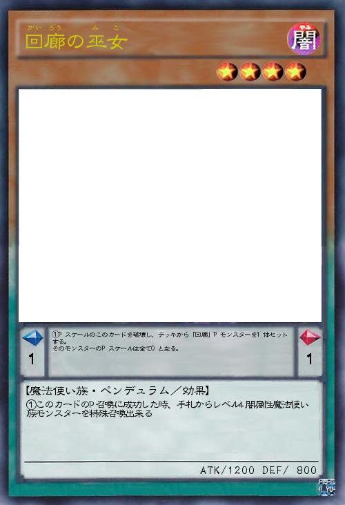 | ①Pスケールのこのカードを破壊し、デッキから「回廊」Pモンスターを1体セットする。 そのモンスターのPスケールは全て0となる。 | |||