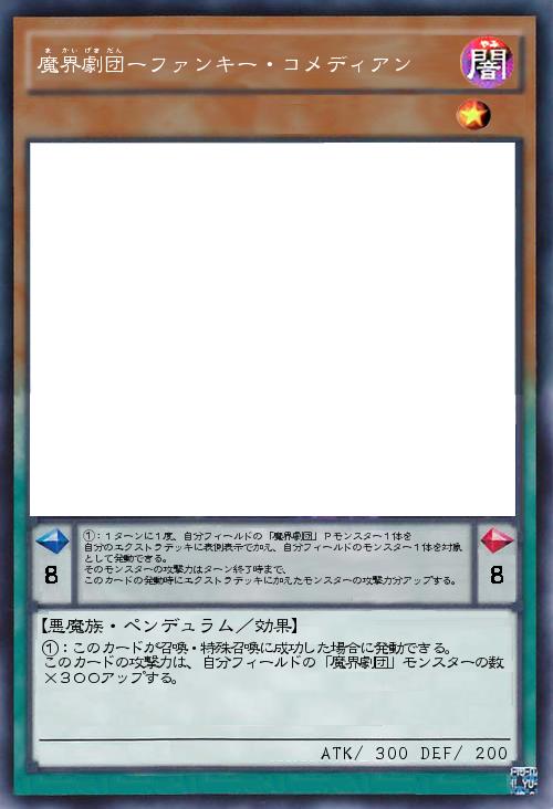 | ①:このカードが召喚・特殊召喚に成功した場合に発動できる。 このカードの攻撃力は、自分フィールドの「魔界劇団」モンスターの数×300アップする。 | |||