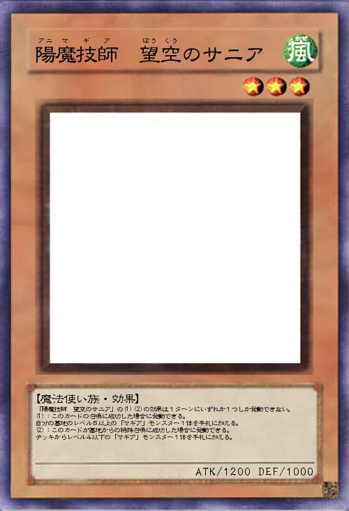 | 「陽魔技師 望空のサニア」の(1)(2)の効果は1ターンにいずれか1つしか発動できない。 (1):このカードの召喚に成功した場合に発動できる。 自分の墓地のレベル5以上の「マギア」モンスター1体を手札に加える。 (2):このカードが墓地からの特殊召喚に成功した場合に発動できる。 デッキからレベル4以下の「マギア」モンスター1体を手札に加える。 | |||