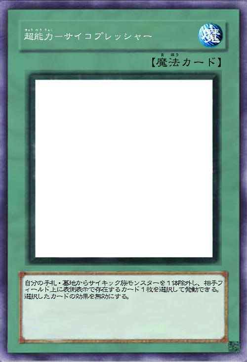 | 自分の手札・墓地からサイキック族モンスターを1体除外し、相手フィールド上に表側表示で存在するカード1枚を選択して発動できる。選択したカードの効果を無効にする。 | |||