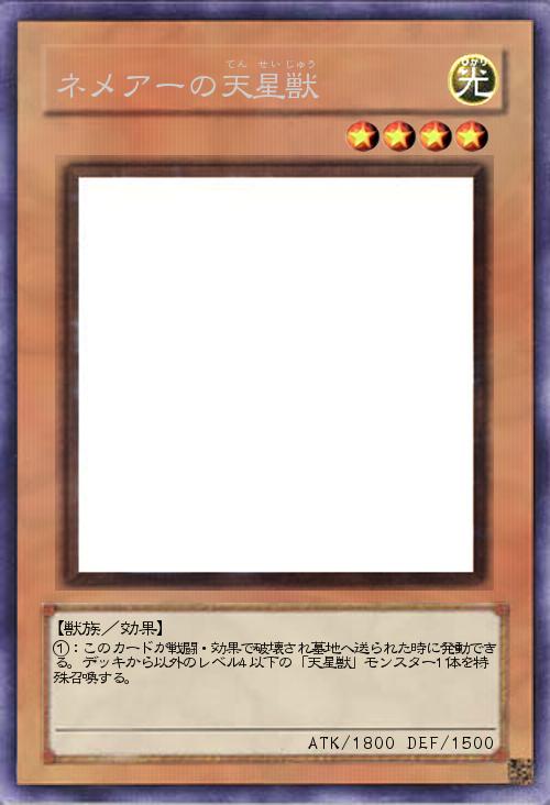 | ①:このカードが戦闘・効果で破壊され墓地へ送られた時に発動できる。デッキから以外のレベル4以下の「天星獣」モンスター1体を特殊召喚する。 | |||