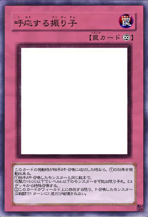 | このカードの発動時が相手がP召喚に成功した時なら、①の効果を発動出来る。 ①相手がP召喚したモンスターと同じ数まで、 攻撃力1500以下でレベル4以下のモンスターを可能な限り手札、EXデッキから特殊召喚する。 ②このカードがフィールド上に存在する限り、P召喚したモンスターは戦闘で1ターンに1度だけ破壊されない。 | |||