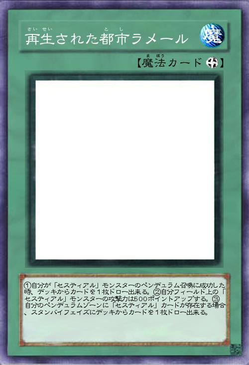 | ①自分が「セスティアル」モンスターのペンデュラム召喚に成功した時、デッキからカードを1枚ドロー出来る。②自分フィールド上の「セスティアル」モンスターの攻撃力は500ポイントアップする。③自分のペンデュラムゾーンに「セスティアル」カードが存在する場合、スタンバイフェイズにデッキからカードを1枚ドロー出来る。 | |||
