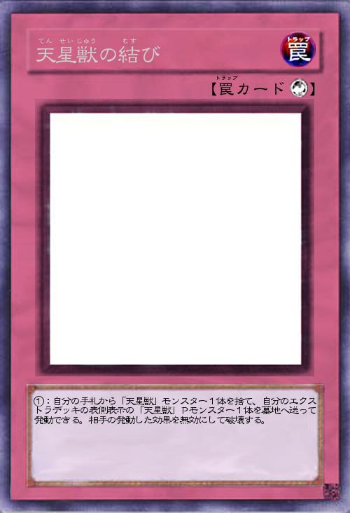 「天星獣サポートカード。相手の効果を無効にしつつ、手札に溜まった不要な天星獣を処理できます。必要なカードが多いのが難点ですが、万能無効を使うのであればこれくらいは払ってほしいもんですね(怒)」(2015-04-14 10:48)