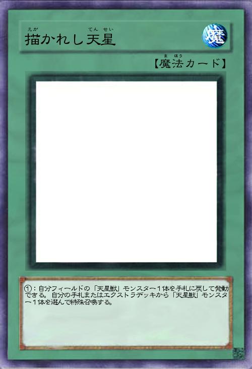| ①:自分フィールドの「天星獣」モンスター1体を手札に戻して発動できる。自分の手札またはエクストラデッキから「天星獣」モンスター1体を選んで特殊召喚する。 | |||