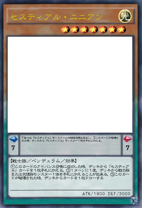 | ①このカードのアドバンス召喚に成功した時、デッキから「セスティアル」カードを1枚手札に加える。②1ターンに1度、デッキから戦士族または天使族モンスター1体を手札に加えることが出来る。③このカードが破壊された時、デッキからカードを1枚ドローする | |||
