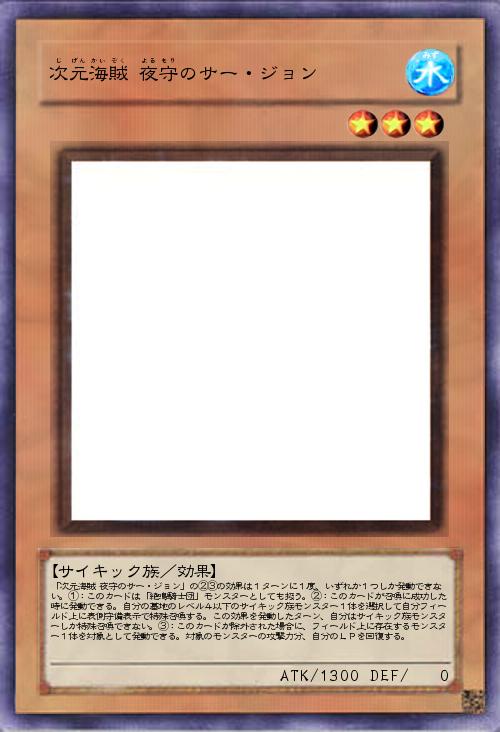 | 「次元海賊 夜守のサー・ジョン」の②③の効果は1ターンに1度、いずれか1つしか発動できない。①:このカードは「絶鳴騎士団」モンスターとしても扱う。②:このカードが召喚に成功した時に発動できる。自分の墓地のレベル4以下のサイキック族モンスター1体を選択して自分フィールド上に表側守備表示で特殊召喚する。この効果を発動したターン、自分はサイキック族モンスターしか特殊召喚できない。③:このカードが除外された場合に、フィールド上に存在するモンスター1体を対象として発動できる。対象のモンスターの攻撃力分、自分のLPを回復する。 | |||