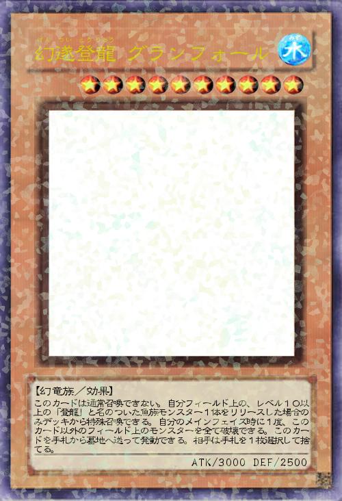| このカードは通常召喚できない。自分フィールド上の、レベル10以上の「登龍」と名のついた魚族モンスター1体をリリースした場合のみデッキから特殊召喚できる。自分のメインフェイズ時に1度、このカード以外のフィールド上のモンスターを全て破壊できる。このカードを手札から墓地へ送って発動できる。相手は手札を1枚選択して捨てる。 | |||