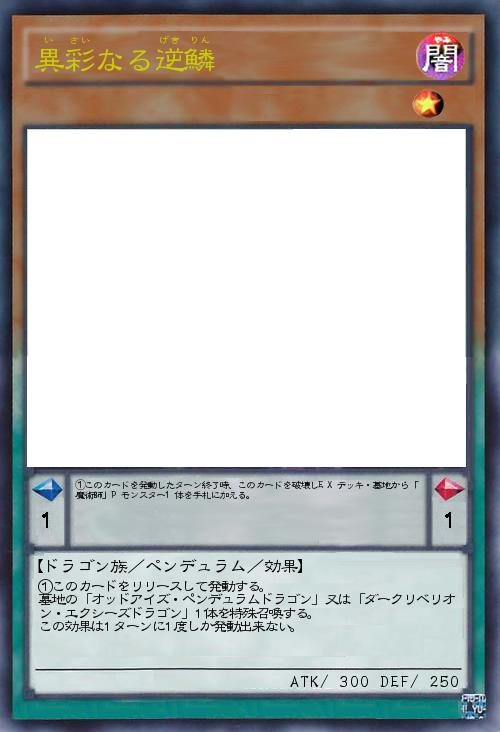 それと、「オッドアイズ・ペンデュラム・ドラゴン」・・・ペンデュラムとドラゴンの間に・が付きます。「ダーク・リべリオン・エクシーズ・ドラゴン」・・・それぞれ・で区切られています。そのあたりもご注意を。」(2015-04-20 22:17)