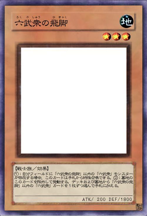 | ①:自分フィールドに「六武衆の飛脚」以外の「六武衆」モンスターが存在する場合、このカードは手札から特殊召喚できる。②:墓地のこのカードを除外して発動する。デッキおよび墓地から「六武衆の飛脚」以外の「六武衆」カードを1枚ずつ選んで手札に加える。 | |||