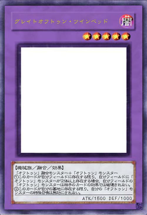 | 「オフトゥン」融合モンスター+「オフトゥン」モンスター ①このカードが自分フィールドに存在する限り、自分フィールドに「オフトゥン」モンスターが2体以上存在する場合、自分フィールドの「オフトゥン」モンスターは相手のカードの効果では破壊されない。 ②このカードが自分の墓地に存在する限り、自分の「オフトゥン」モンスターの特殊召喚は無効にされない。 | |||