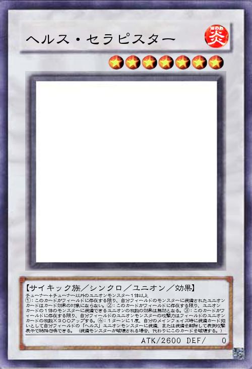 | チューナー+チューナー以外のユニオンモンスター1体以上 ①:このカードがフィールドに存在する限り、自分フィールドのモンスターに装備されたユニオンカードはカード効果の対象にならない。②:このカードがフィールドに存在する限り、ユニオン カードの1体のモンスターに装備できるユニオンの枚数の効果は無効となる。③:このカードがフィールドに存在する限り、自分フィールドのユニオンモンスターの攻撃力はフィールドのユニオンカードの枚数×300アップする。④:1ターンに1度、自分のメインフェイズ時に装備カード扱いとして自分フィールドの「ヘルス」ユニオンモンスターに装備、または装備を解除して表側攻撃表示で特殊召喚できる。(装備モンスターが破壊される場合、代わりにこのカードを破壊する。) | |||