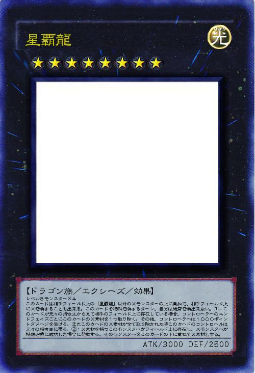 | レベル8モンスター×4 このカードは相手フィールド上の「星覇龍」以外のXモンスターの上に重ねて、相手フィールド上にX召喚することも出来る。このカードを特殊召喚するターン、自分は通常召喚出来ない。①:このカードが元々の持ち主から見て相手のフィールド上に存在している場合、コントローラーのエンドフェイズごとにこのカードのX素材を1つ取り除く。その後、コントローラーは1000ポイントダメージを受ける。またこのカードのX素材が全て取り除かれた時このカードのコントロールは元々の持ち主に戻る。②:X素材を持つこのモンスターがフィールド上に存在し、Xモンスターが特殊召喚に成功した場合に発動する。そのモンスターをこのカードの下に重ねてX素材とする。 | |||
