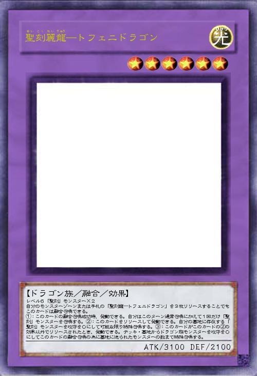 | レベル6「聖刻」モンスター×2 自分のモンスターゾーンまたは手札の「聖刻龍―トフェニドラゴン」を3枚リリースすることでもこのカードは融合召喚できる。 ①:このカードの融合召喚成功時、発動できる。自分はこのターン通常召喚に加えて1回だけ「聖刻」モンスターを召喚する。②:このカードをリリースして発動できる。自分の墓地に存在する「聖刻」モンスターを攻守を0にして可能な限り特殊召喚する。③:このカードがこのカードの②の効果以外でリリースされたとき、発動できる。デッキ・墓地からドラゴン族モンスターを攻守を0にしてこのカードの融合召喚の為に墓地に送られたモンスターの数まで特殊召喚する。 | |||