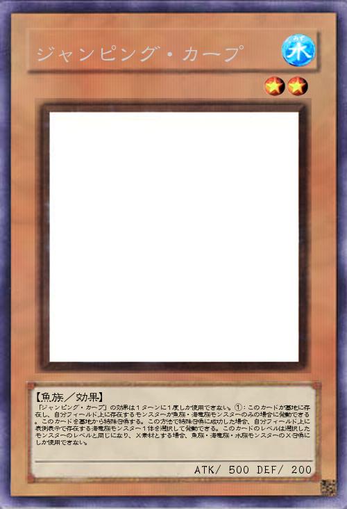 | 「ジャンピング・カープ」の効果は1ターンに1度しか使用できない。①:このカードが墓地に存在し、自分フィールド上に存在するモンスターが魚族・海竜族モンスターのみの場合に発動できる。このカードを墓地から特殊召喚する。この方法で特殊召喚に成功した場合、自分フィールド上に表側表示で存在する海竜族モンスター1体を選択して発動できる。このカードのレベルは選択したモンスターのレベルと同じになり、X素材とする場合、魚族・海竜族・水族モンスターのX召喚にしか使用できない。 | |||