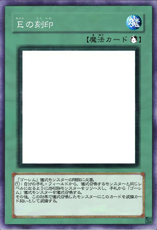 「装備カード扱いになる「E」カードと「E」カードを装備しているときのみ力を発揮する「ゴーレム」儀式モンスターで構成された、新テーマ【エメト】となります。」(2015-05-06 15:49)